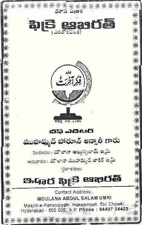 ఫిక్రే ఆఖిరత్ (పరలోక చింత) మాసపత్రిక (Fikre-Akhirath Telugu Monthly )
