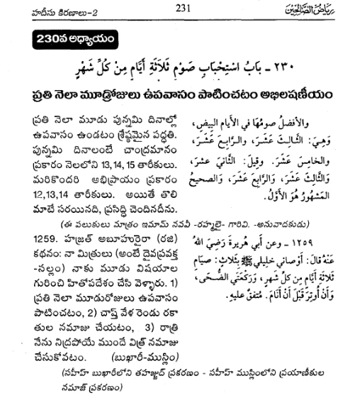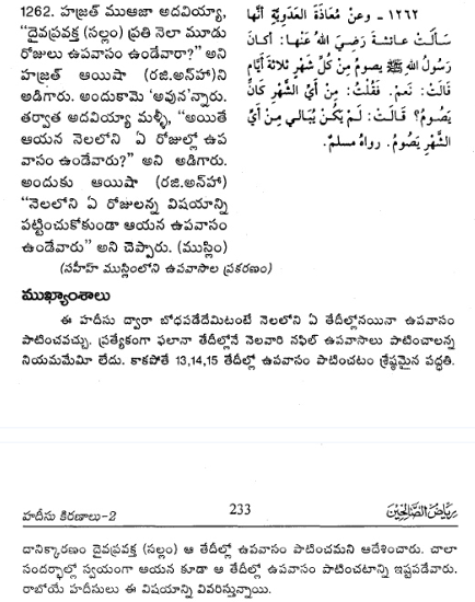 ప్రతి నెల మూడు రోజులు ఉపవాసం పాటించటం [PDF]
