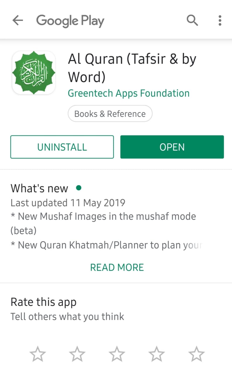 Al Quran (Tafsir& by Word) – ఇది ఇంగ్లీష్ లో ఫేమస్ యాప్. ఇంగ్లిష్ తెలిసిన వారు తఫ్సిర్ ఇబ్న్ కసీర్ చదవచ్చు. అలాగే ప్రతి పదానికి అరబిక్ అర్ధం, దాని అరబీ మూల పదం, ఇంకా అది ఎక్కెడెక్కడ వచ్చింది అని తెలుసుకోవచ్చు. ఇప్పుడు మేము సూచించిన మేరకు అహ్సనుల్ బయాన్ అనువాదం రీసెంట్ గా జత చేసారు.