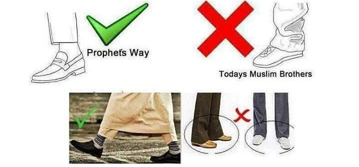 3- పురుషులపై నిషిద్ధమున్న మరో విషయం వారు తమ వస్త్రాలను చీలమండలం క్రిందికి తొడగుట.