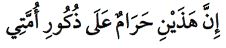 “ఇవి రెండూ నా అనుచర సమాజంలోని పురుషుల కొరకు నిషేధించబడ్డాయి” అని చెప్పారు. (అబూ దావూద్/ ఫిల్ హరీరి లిన్నిసా 4057, నసాయి/ తహ్రీముజ్జహబి అలర్రిజాల్ 5053).